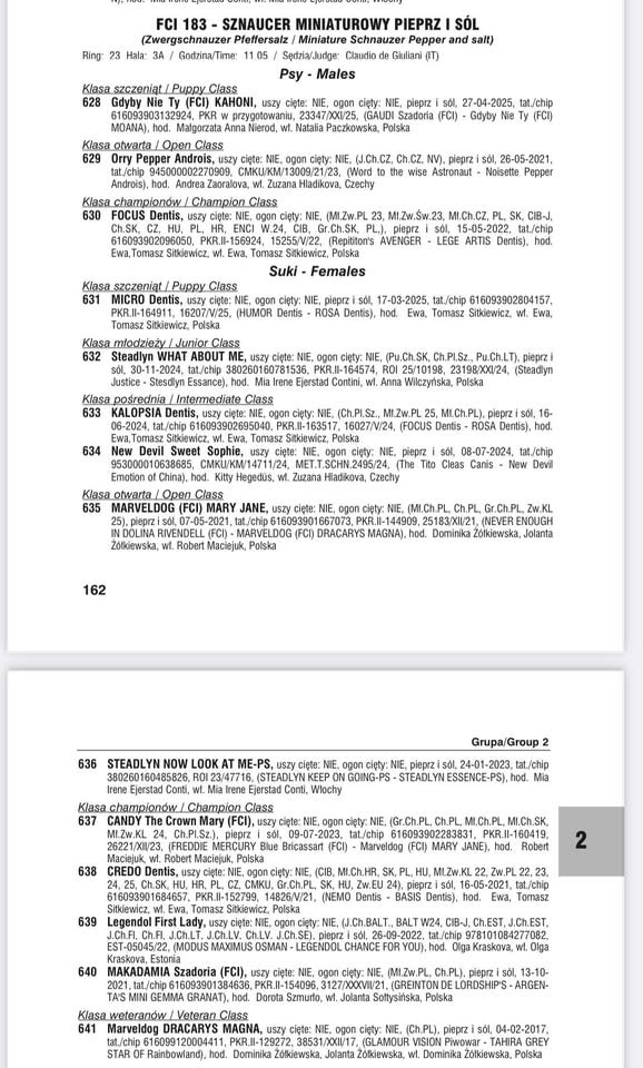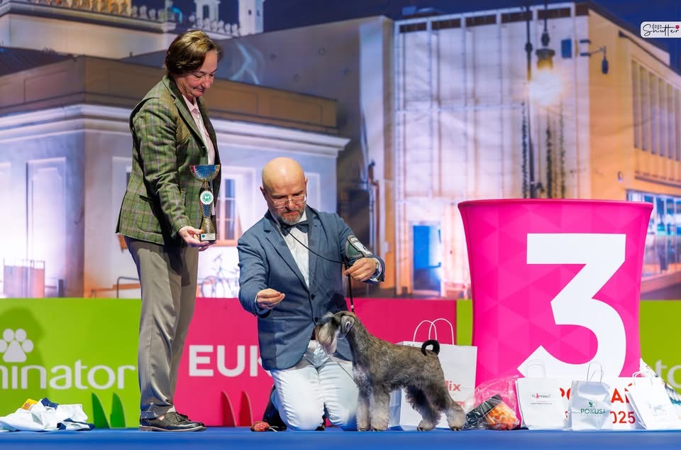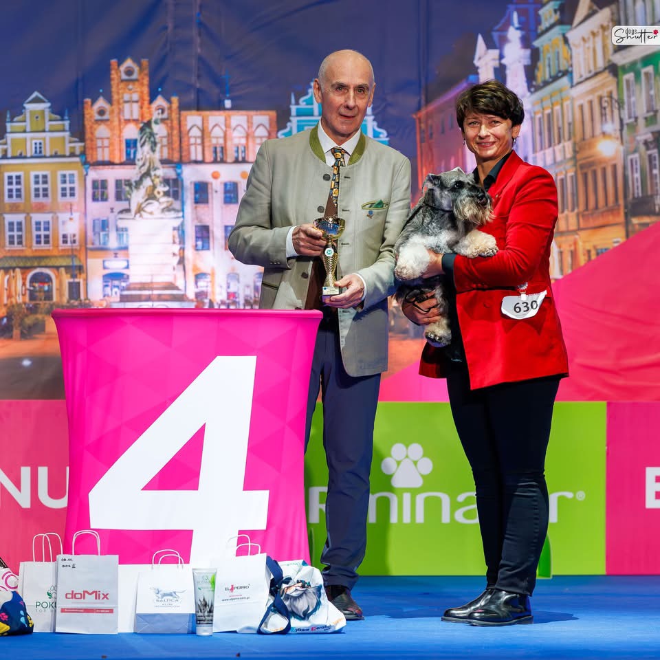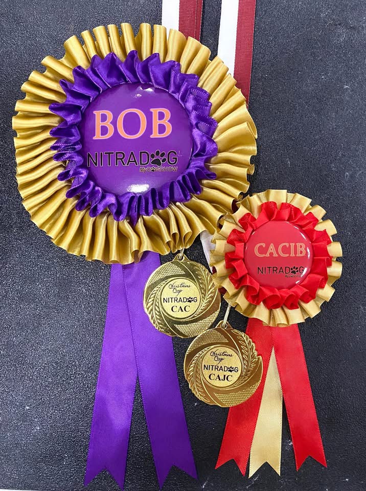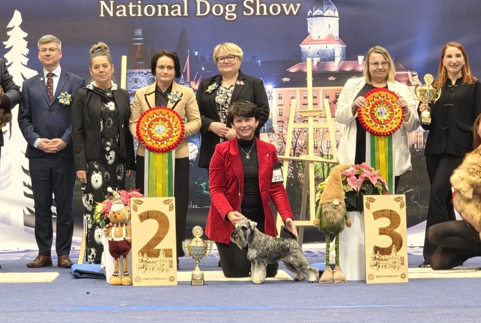 FOCUS Dentis- kl.championów (champion cl.) - ocena doskonała (exc), 1.lokata (V1/2), Najpiękniejszy Dorosły Pies w Rasie, Zwycięzca Klubu 2025 (Polish Club Winner 2025)Najpiękniejszy Pies Płci Przeciwnej (BOS)