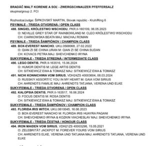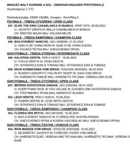 KALOPSIA Dentis- kl.otwarta- ocena doskonała (exc.), miejsce 1 (V1), wniosek do Championatu Słowacji (CAC), rezerwowy wniosek do tytułu Międzynarodowego Championa Piękności (Res.CACIB)