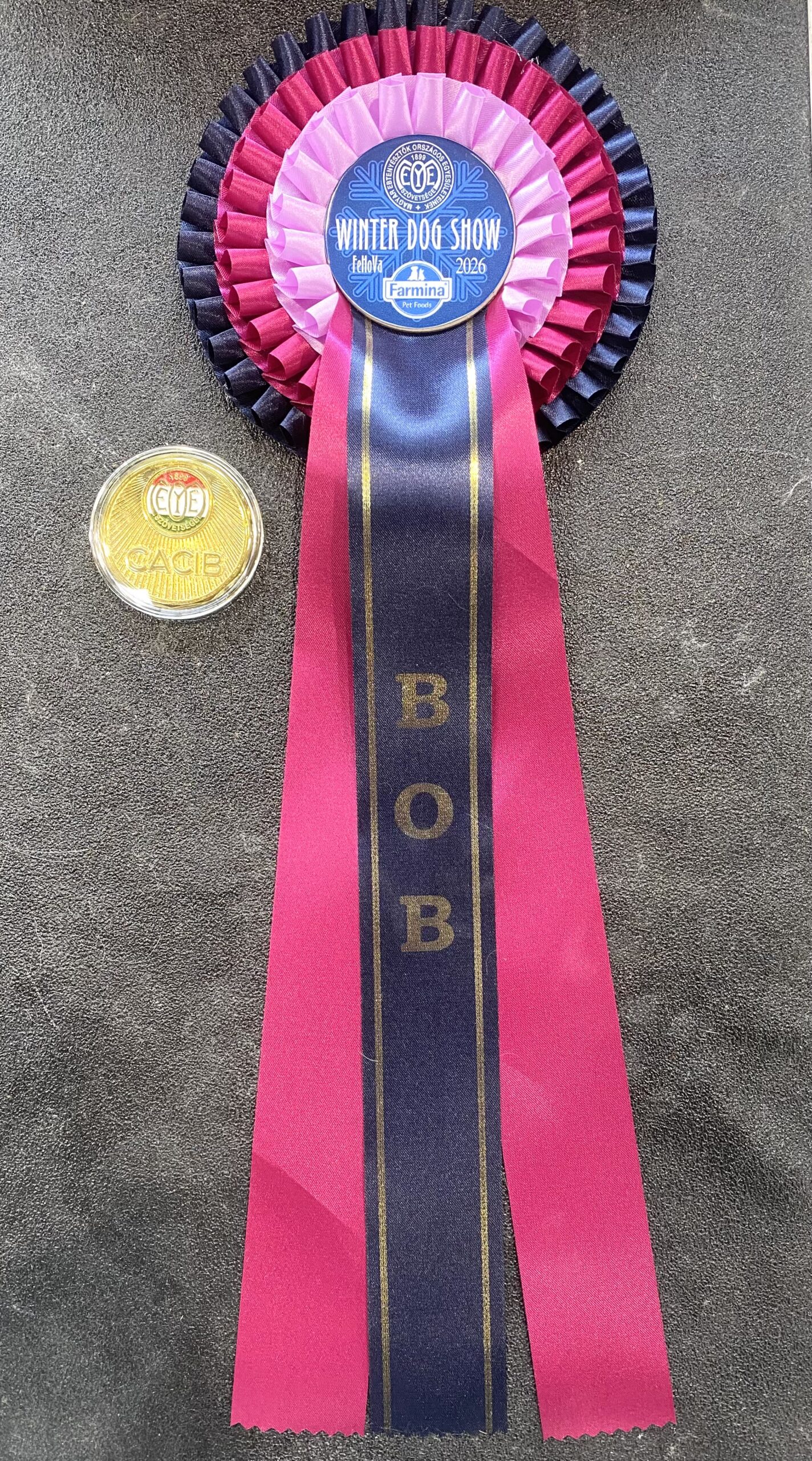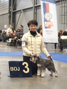 LEGO Dentis- kl.pośrednia- ocena doskonała (exc.), lokata 1. (V1), wniosek do tytułu Championa Węgier (CAC), Najpiękniejsza Dorosła Suka w Rasie, wniosek do tytułu Międzynarodowego Championa Piękności (CACIB), Zwycięzca Rasy (BOB)
