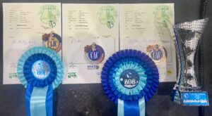 KALOPSIA Dentis- kl.championów-  ocena doskonała (exc.), lokata 1. (V1), wniosek do tytułu Championa Węgier (CAC), Najpiękniejsza Dorosła Suka w Rasie, wniosek do tytułu Międzynarodowego Championa Piękności (CACIB), Zwycięzca Rasy (BOB), w konkurencji finałowej BOG wybrana w pierwszej selekcji